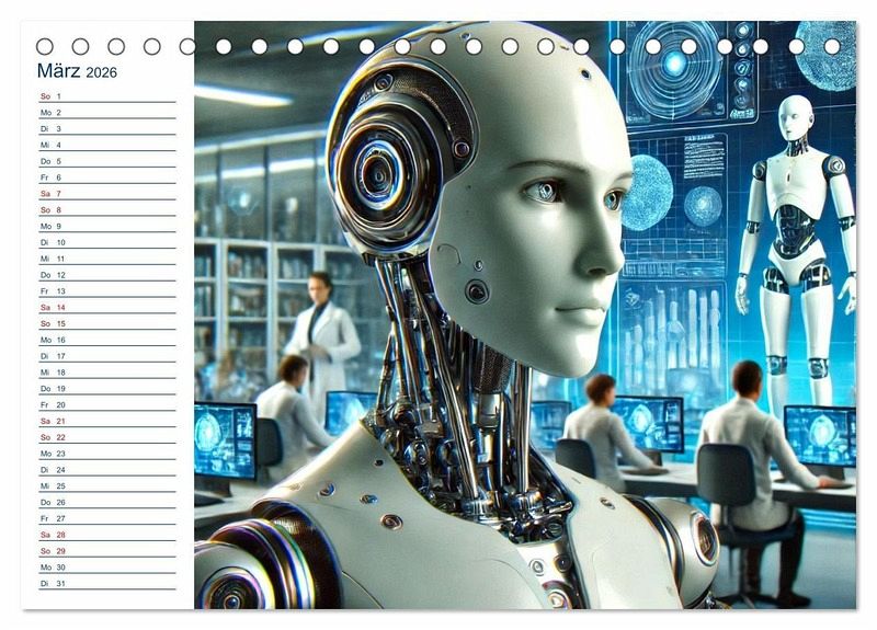 Willkommen in der Zukunft. Tauchen Sie ein in eine faszinierende Welt, in der Roboter unseren Alltag, die Industrie und Forschung revolutionieren. Dieser hochwertige KI generierter Kalender zeigt in beindruckend gestalteten Motiven, wie digitale Vernetzung und Künstliche Intelligenz bereits heute unser Leben verändern. Vom Pflegeroboter über autonome Systeme bis hin zur Mensch-Maschine-Interaktion. Ein muss für Technikbegeisterte, Zukunftsdenker und alle, die einen inspirierenden Blick auf die Arbeitswelt von morgen werfen wollen. Monat für Monat visionär, informativ, eindrucksvoll.