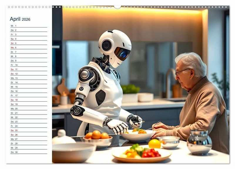 Willkommen in der Zukunft. Tauchen Sie ein in eine faszinierende Welt, in der Roboter unseren Alltag, die Industrie und Forschung revolutionieren. Dieser hochwertige KI generierter Kalender zeigt in beindruckend gestalteten Motiven, wie digitale Vernetzung und Künstliche Intelligenz bereits heute unser Leben verändern. Vom Pflegeroboter über autonome Systeme bis hin zur Mensch-Maschine-Interaktion. Ein muss für Technikbegeisterte, Zukunftsdenker und alle, die einen inspirierenden Blick auf die Arbeitswelt von morgen werfen wollen. Monat für Monat visionär, informativ, eindrucksvoll.