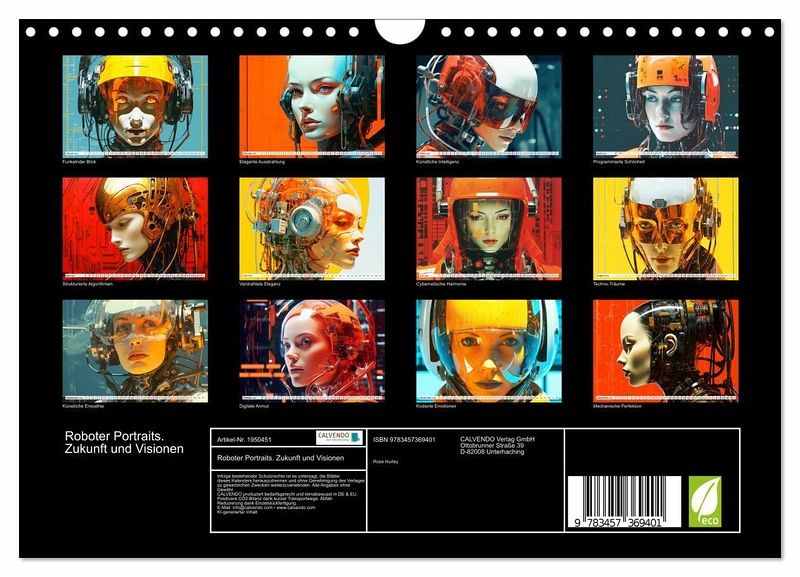 Entdecken Sie die faszinierende Welt der Künstlichen Intelligenz. Jedes der 12 atemberaubenden Bilder zeigt ein weibliches Roboter-Gesicht, das mit Hilfe modernster KI-Technologie generiert wurde. Von eleganten Augen bis hin zu glänzender Haut verkörpern diese Kunstwerke die perfekte Verschmelzung von Mensch und Maschine. Erleben Sie die faszinierende Schönheit und technische Raffinesse dieser Roboter-Portraits, die Ihre Vorstellungskraft beflügeln werden. Holen Sie sich diesen tollen Kalender und lassen Sie sich von der Zukunft inspirieren.