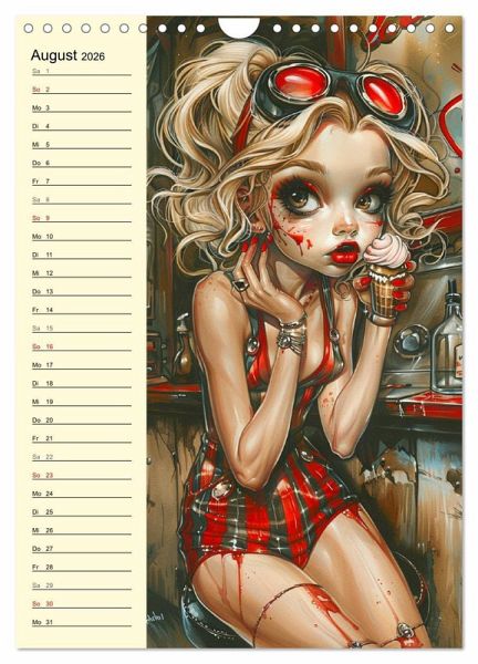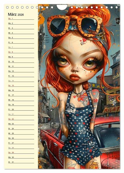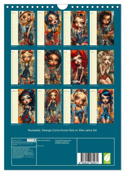 Dieser einzigartige Kalender bringt pop-surrealistische Kunst und den unverwechselbaren Stil der 50er Jahre zusammen. Jedes Bild wurde mit Hilfe von KI erstellt und zeigt ein kunstvolles Comicbild von Rockabilly-Girls in schrägen, surrealen Szenen. Perfekt für Liebhaber von Retro, Weird Art und Comics. Lassen Sie sich jeden Monat von dieser skurrilen Welt verzaubern.
