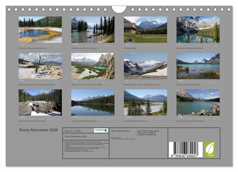 QUALITÄT - Hochwertiger Fotokalender mit 12 wunderschönen Motiven auf lichtbeständigem Bilderdruckpapier, robuste Spiralbindung mit Aufhängebügel.NACHHALTIG - deutliche Abfallreduzierung durch bedarfsgerechte Einzelstückfertigung, umweltfreundliches FSC-zertifiziertes Papier, Produktion in Deutschland, klimabewusste Logistik.PERFEKTES GESCHENK - Kalender für Freunde und Familie, für Kinder und Erwachsene, jung und alt, zu Weihnachten, Geburtstag oder zwischendurch.VIELFALT - Bildkalender in verschiedenen Formaten, z.B. DIN A5, DIN A4, DIN A3 sowie DIN A2. Ob Naturmotiv, Gemälde oder Fotos, ideal für ein persönliches Wohlfühlambiente.Die schönsten Orte in den Rocky Mountains zwischen Columbia und Idaho von Autor(in): Frank Zimmermann