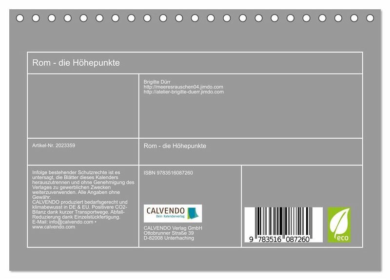 QUALITÄT - Hochwertiger Fotokalender mit 12 wunderschönen Motiven auf lichtbeständigem Bilderdruckpapier, robuste Spiralbindung.NACHHALTIG - deutliche Abfallreduzierung durch bedarfsgerechte Einzelstückfertigung, umweltfreundliches FSC-zertifiziertes Papier, Produktion in Deutschland, klimabewusste Logistik.PERFEKTES GESCHENK - Kalender für Freunde und Familie, für Kinder und Erwachsene, jung und alt, zu Weihnachten, Geburtstag oder zwischendurch.VIELFALT - Bildkalender in verschiedenen Formaten, z.B. DIN A5, DIN A4, DIN A3 sowie DIN A2. Ob Naturmotiv, Gemälde oder Fotos, ideal für ein persönliches Wohlfühlambiente.Die touristischen Sehenswürdigkeiten Roms von Autor(in): Brigitte Dürr