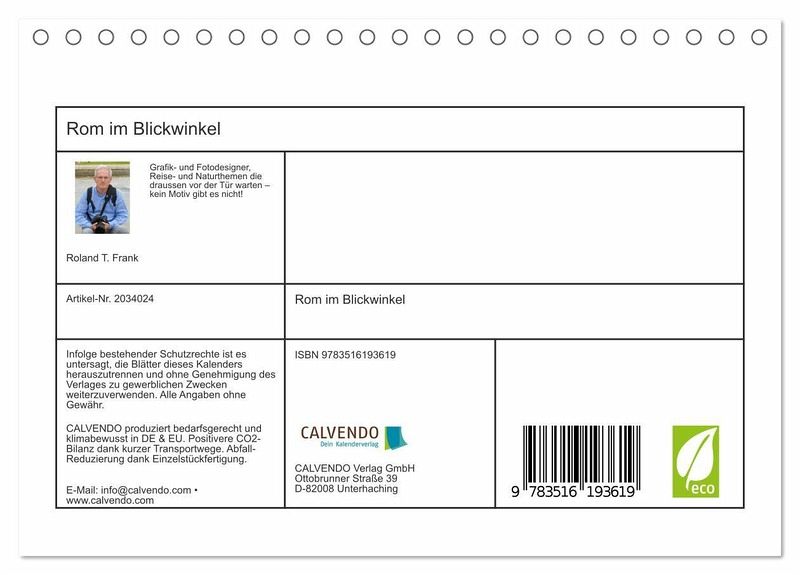 QUALITÄT - Hochwertiger Fotokalender mit 12 wunderschönen Motiven auf lichtbeständigem Bilderdruckpapier, robuste Spiralbindung.NACHHALTIG - deutliche Abfallreduzierung durch bedarfsgerechte Einzelstückfertigung, umweltfreundliches FSC-zertifiziertes Papier, Produktion in Deutschland, klimabewusste Logistik.PERFEKTES GESCHENK - Kalender für Freunde und Familie, für Kinder und Erwachsene, jung und alt, zu Weihnachten, Geburtstag oder zwischendurch.VIELFALT - Bildkalender in verschiedenen Formaten, z.B. DIN A5, DIN A4, DIN A3 sowie DIN A2. Ob Naturmotiv, Gemälde oder Fotos, ideal für ein persönliches Wohlfühlambiente.Die "Ewige Stadt" aus eindrucksvollen Blickwinkeln die Sie durchs Jahr 2014 begleiten. von Autor(in): Roland T. Frank