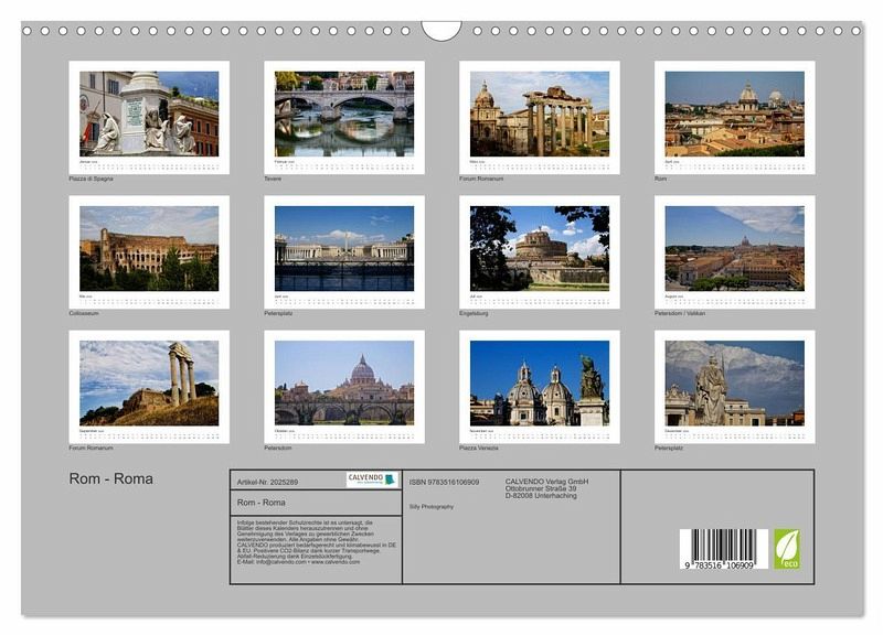 QUALITÄT - Hochwertiger Fotokalender mit 12 wunderschönen Motiven auf lichtbeständigem Bilderdruckpapier, robuste Spiralbindung mit Aufhängebügel.NACHHALTIG - deutliche Abfallreduzierung durch bedarfsgerechte Einzelstückfertigung, umweltfreundliches FSC-zertifiziertes Papier, Produktion in Deutschland, klimabewusste Logistik.PERFEKTES GESCHENK - Kalender für Freunde und Familie, für Kinder und Erwachsene, jung und alt, zu Weihnachten, Geburtstag oder zwischendurch.VIELFALT - Bildkalender in verschiedenen Formaten, z.B. DIN A5, DIN A4, DIN A3 sowie DIN A2. Ob Naturmotiv, Gemälde oder Fotos, ideal für ein persönliches Wohlfühlambiente.Rom - Roma - Die ewige Stadt von Autor(in): Silly Photography / Silvia Grimpe