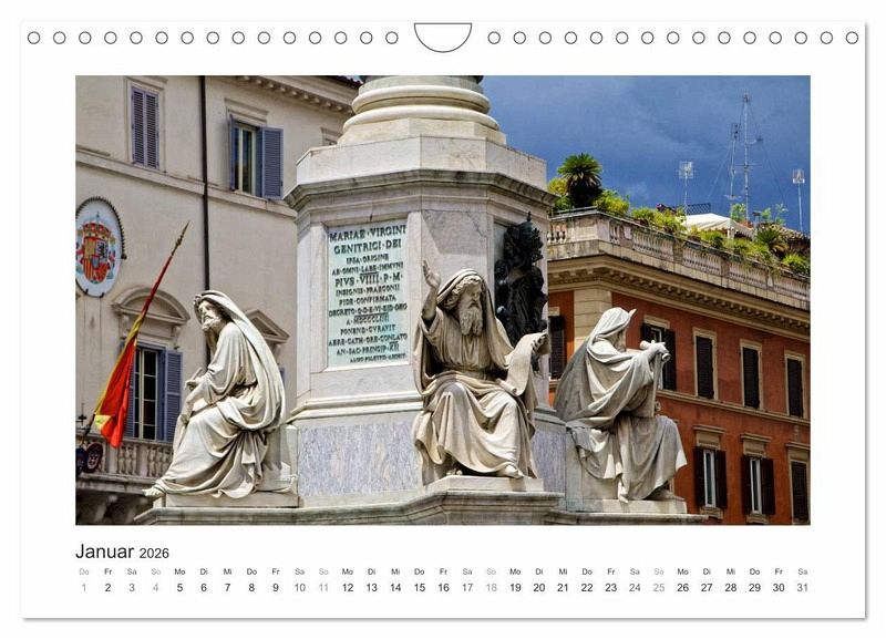 Rom - Roma - Die ewige Stadt. Die weltberühmte Stadt Rom gibt es hier mit vielen Sehenswürdigkeiten zu entdecken. Dieser Kalender zeigt Ihnen Bilder des besonderen Zaubers der Stadt Rom.