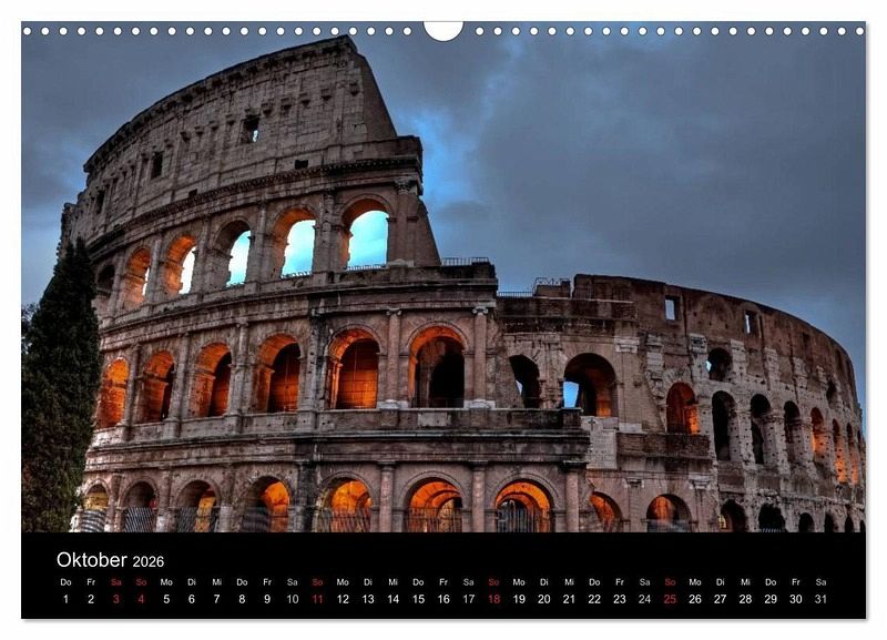 Dieser Kalender wurde mit dem Award "Top 100" ausgezeichnet. Rom wird gerne als die "Ewige Stadt" bezeichnet. Die Mischung zwischen kribbelnder Metropole und antiker Stätte macht diese Stadt so beliebt und fotogen. Während des Römischen Reiches erlebte Rom seine Blütezeit und hat bis heute seinen Glanz nicht verloren. Aus der Zeit des Römischen Reiches sind noch heute zahlreiche Sehenswürdigkeiten zu sehen. Das Kolosseum, das Forum Romanum, die Caracalla-Therme oder das Pantheon. Rom ist nicht nur immer eine Reise wert, sondern hat auch einen "ewigen" Platz an ihrer Wand durch einen Fotokalender verdient.
