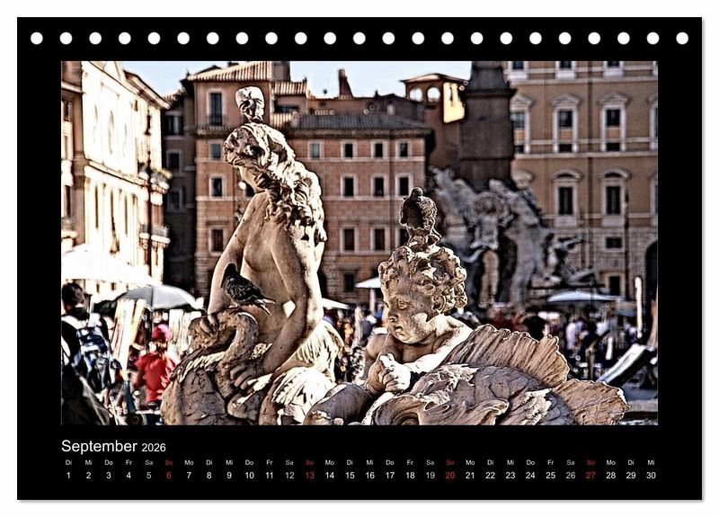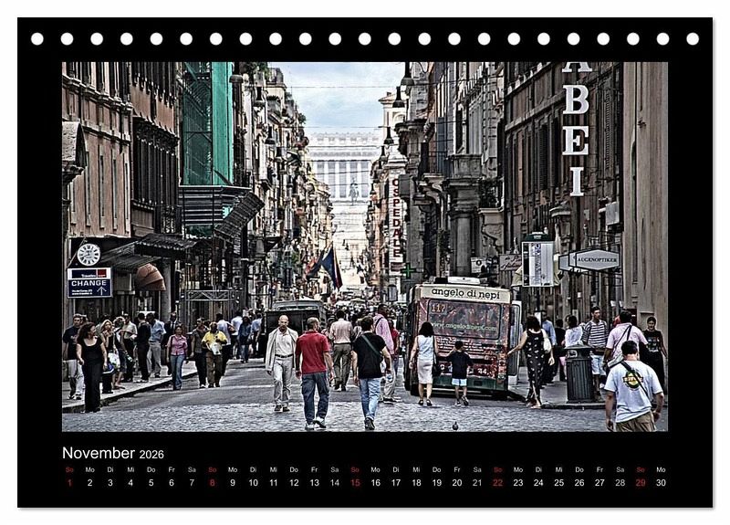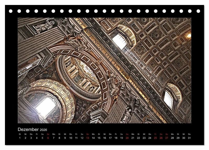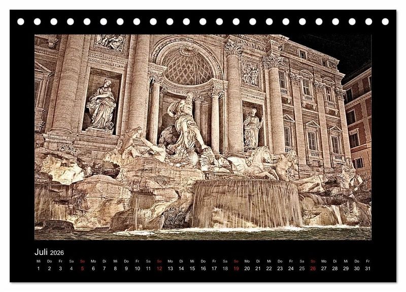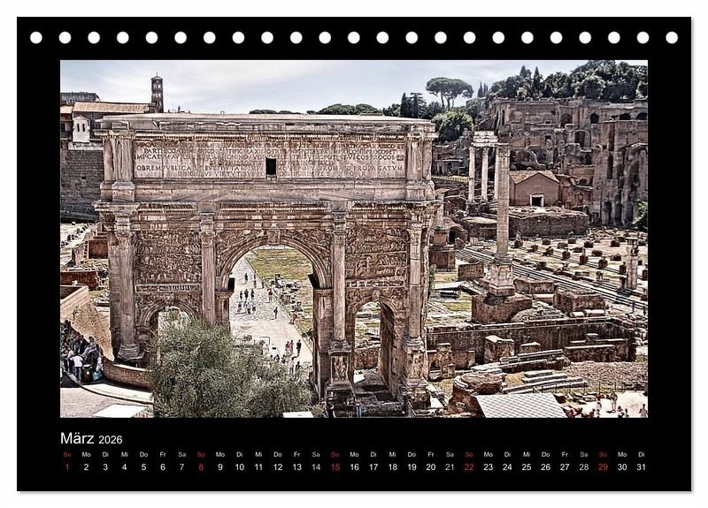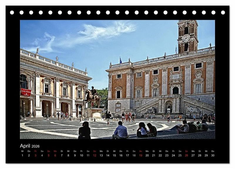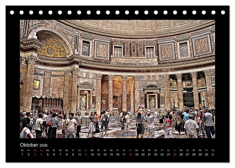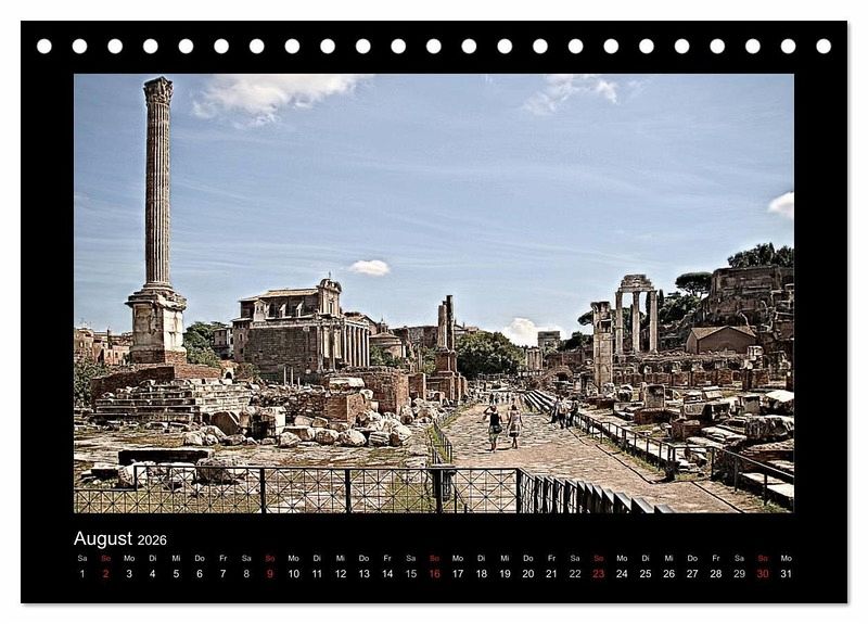 In kaum einer anderen Stadt gibt es so viele Spuren der Vergangenheit zu sehen wie in der "ewigen Stadt". Kein Wunder bei der mehr als 2700-jährigen Geschichte! Dieser Kalender zeigt 13 davon - Gebäude, Plätze und Straßen, von der Antike bis zum Barock. Darunter befinden sich zum Beispiel Kolosseum, Forum Romanum, Trajansforum, Trevi-Brunnen, Pantheon, Petersdom und Piazza del Popolo - in spektakulär detailreich wirkenden Fotos. +++ ENGLISH +++ There aren't many citys in the world where you can see so many vestiges of the past like in Rome. Remember: This Town has a more than 2700 years old history! Our calendar presents 13 of these places - buildings, squares and streets, from the antiquity to the Baroque. Colosseum, Roman Forum, Trajan's Forum, Trevi Fountain, Pantheon, St. Peter's Basilica and the Piazza del Popolo, for example, are included - in the spectacularly detailed photos.