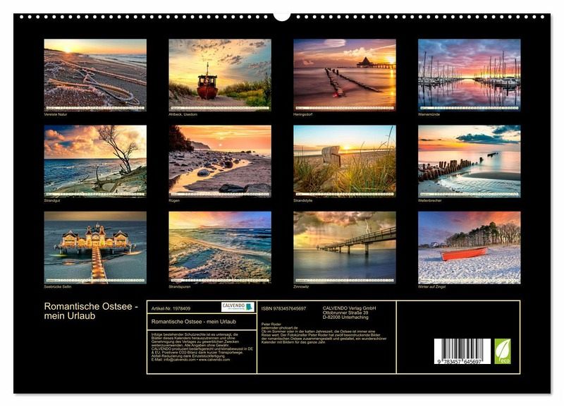 QUALITÄT - Hochwertiger Fotokalender mit 12 wunderschönen Motiven auf lichtbeständigem Bilderdruckpapier, robuste Spiralbindung mit Aufhängebügel.NACHHALTIG - deutliche Abfallreduzierung durch bedarfsgerechte Einzelstückfertigung, umweltfreundliches FSC-zertifiziertes Papier, Produktion in Deutschland, klimabewusste Logistik.PERFEKTES GESCHENK - Kalender für Freunde und Familie, für Kinder und Erwachsene, jung und alt, zu Weihnachten, Geburtstag oder zwischendurch.VIELFALT - Bildkalender in verschiedenen Formaten, z.B. DIN A5, DIN A4, DIN A3 sowie DIN A2. Ob Naturmotiv, Gemälde oder Fotos, ideal für ein persönliches Wohlfühlambiente.Eine romantische Reise an die schöne Ostsee. von Autor(in): Peter Roder