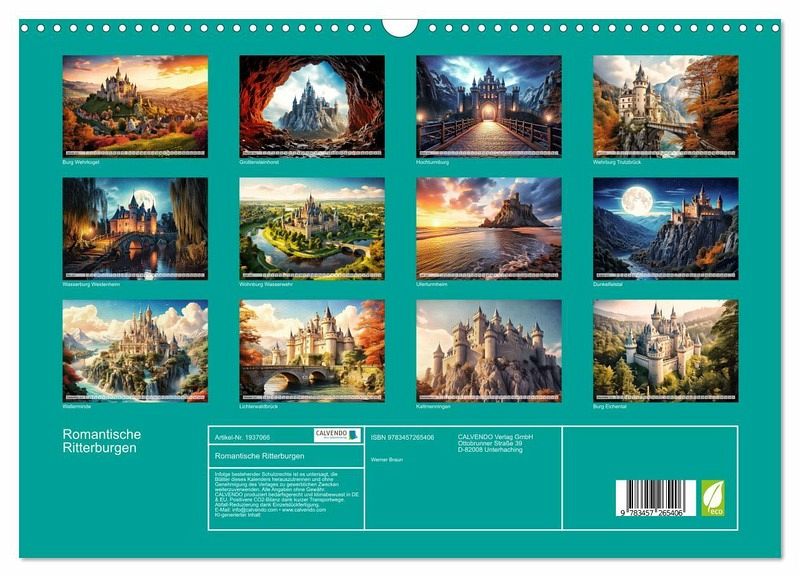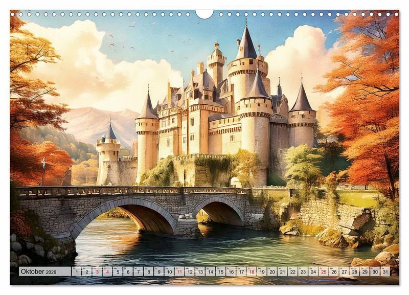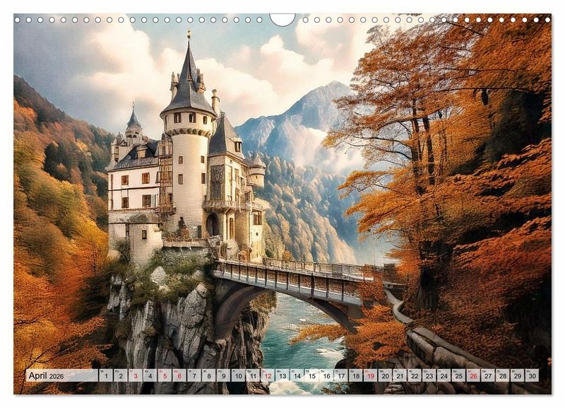 Ritterburgen hatten durchaus ganz konkrete Aufgaben zu bewältigen. Sie waren Schutz der Menschen bei Angriffen feindlicher Heere, sie waren Handelsplätze, teilweise waren sie auch kulturelle Zentren und letztlich Sitz des Landesherrn. Diese Bedeutungen haben sie schon lange verloren. Aber noch heute beeindrucken diese besonderen Bauten nicht zuletzt durch ihre eindrucksvolle Architektur. Der Genuss der romantischen Ausstrahlung einer Ritterburg war nicht nur einem bayrischen König vorbehalten, auch Sie können mit unserem Kalender ein Jahr lang die prächtige Aura romantischer Burgbauten in 12 Bildern zu genießen. Die Bilder sind mit Unterstützung vom künstlicher Intelligenz entstanden und stellen keine real existierenden Burgen dar.