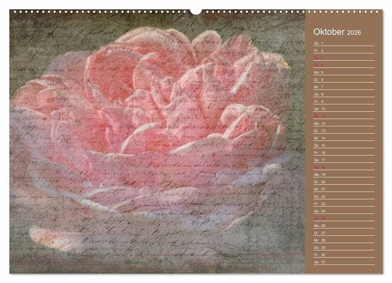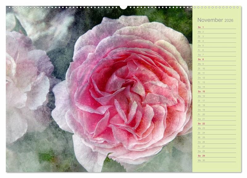 Lassen Sie sich von 12 romantischen Rosenportraits in diesem Planer verzaubern, die die Fotokünstlerin Martina Cross im trendigen Shabby Chic / Vintage Stil bearbeitet hat.
