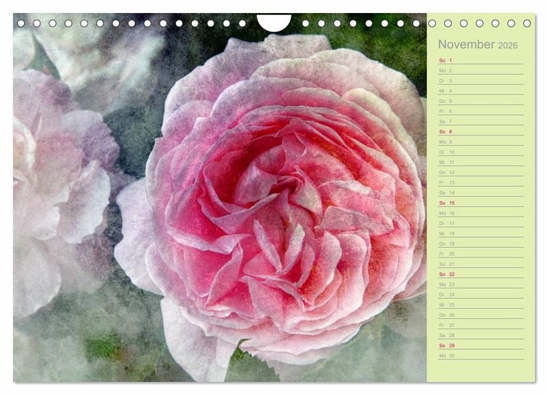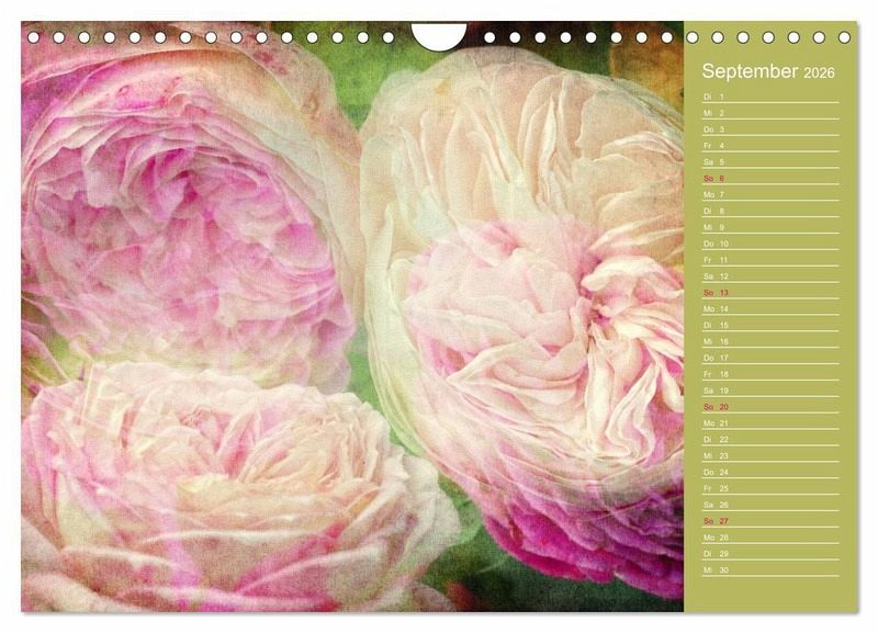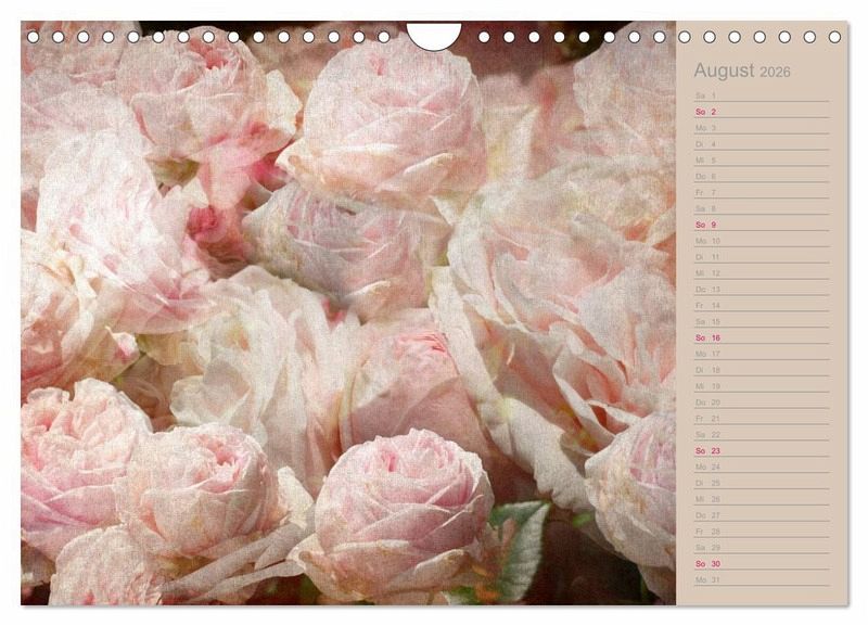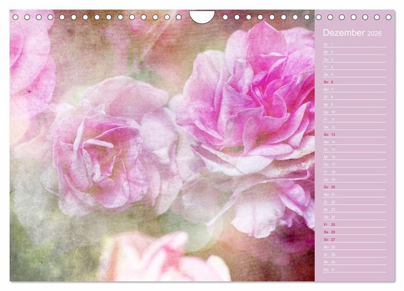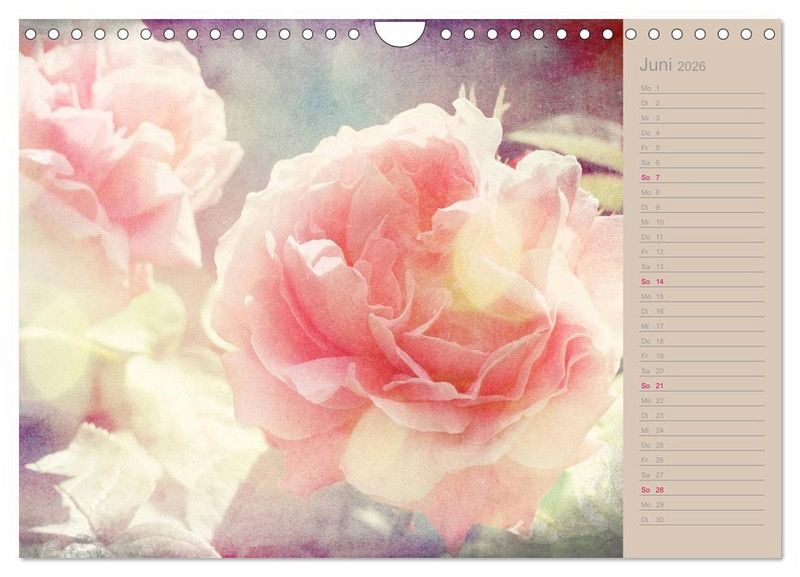 Lassen Sie sich von 12 romantischen Rosenportraits in diesem Planer verzaubern, die die Fotokünstlerin Martina Cross im trendigen Shabby Chic / Vintage Stil bearbeitet hat.