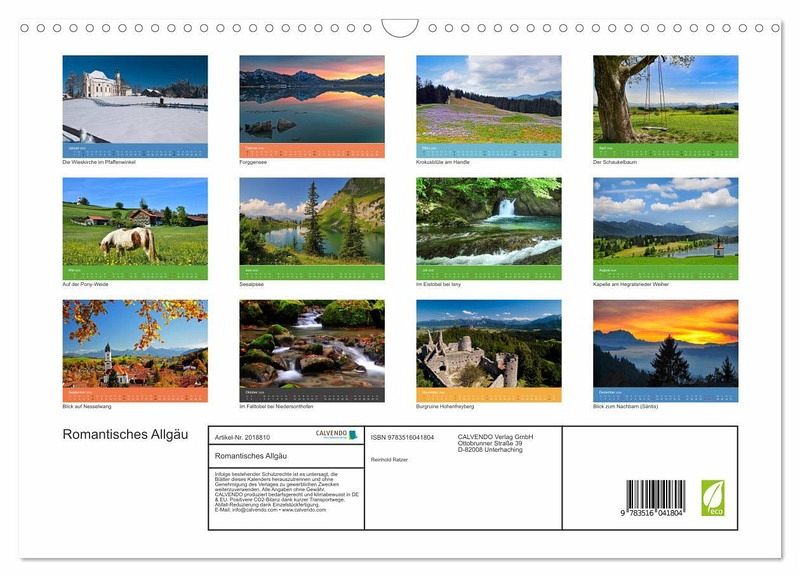 QUALITÄT - Hochwertiger Fotokalender mit 12 wunderschönen Motiven auf lichtbeständigem Bilderdruckpapier, robuste Spiralbindung mit Aufhängebügel.NACHHALTIG - deutliche Abfallreduzierung durch bedarfsgerechte Einzelstückfertigung, umweltfreundliches FSC-zertifiziertes Papier, Produktion in Deutschland, klimabewusste Logistik.PERFEKTES GESCHENK - Kalender für Freunde und Familie, für Kinder und Erwachsene, jung und alt, zu Weihnachten, Geburtstag oder zwischendurch.VIELFALT - Bildkalender in verschiedenen Formaten, z.B. DINA5, DIN A4, DIN A3 sowie DIN A2. Ob Naturmotiv, Gemälde oder Fotos, ideal für ein persönliches Wohlfühlambiente.Romantische Orte im Allgäu von Füssen bis Lindau von Autor(in): Reinhold Ratzer