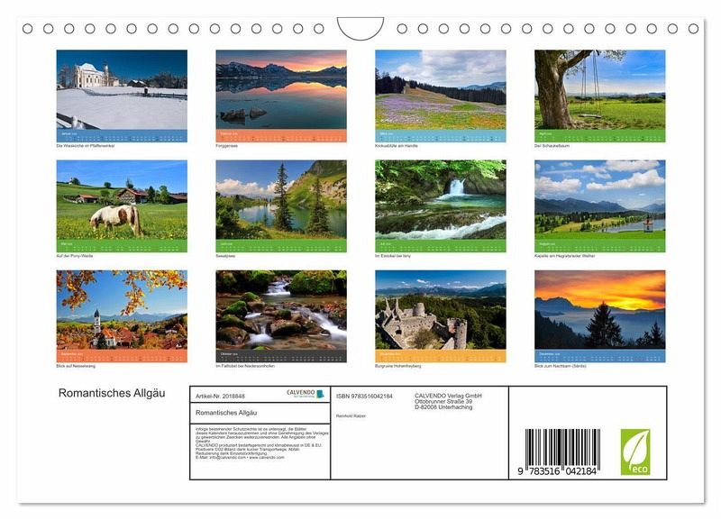 QUALITÄT - Hochwertiger Fotokalender mit 12 wunderschönen Motiven auf lichtbeständigem Bilderdruckpapier, robuste Spiralbindung mit Aufhängebügel.NACHHALTIG - deutliche Abfallreduzierung durch bedarfsgerechte Einzelstückfertigung, umweltfreundliches FSC-zertifiziertes Papier, Produktion in Deutschland, klimabewusste Logistik.PERFEKTES GESCHENK - Kalender für Freunde und Familie, für Kinder und Erwachsene, jung und alt, zu Weihnachten, Geburtstag oder zwischendurch.VIELFALT - Bildkalender in verschiedenen Formaten, z.B. DINA5, DIN A4, DIN A3 sowie DIN A2. Ob Naturmotiv, Gemälde oder Fotos, ideal für ein persönliches Wohlfühlambiente.Romantische Orte im Allgäu von Füssen bis Lindau von Autor(in): Reinhold Ratzer