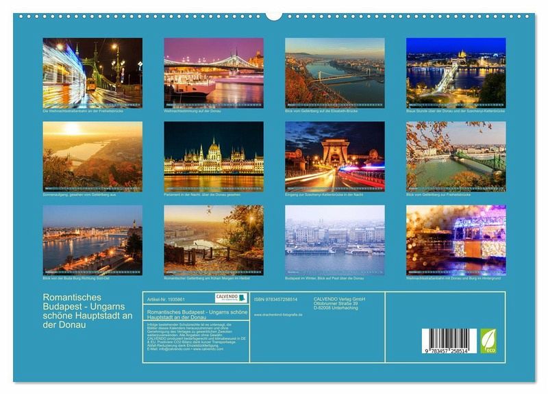 PREMIUM-LINIE - Brillanter Fotokalender mit 12 wunderschönen Motiven, Kunstdruck in Hochglanz in Museumsqualität.QUALITÄT - edle Materialien, stabile Rückwand mit 2 innovativen Einstecktaschen für eine optimale Präsentation an der Wand.NACHHALTIG - deutliche Abfallreduzierung durch bedarfsgerechte Einzelstückfertigung, umweltfreundliches FSC-zertifiziertes Papier, Produktion in Deutschland, klimabewusste Logistik.PERFEKTES GESCHENK - Kalender für Freunde und Familie, für Kinder und Erwachsene, jung und alt, zu Weihnachten, Geburtstag oder zwischendurch.Budapests Charme: Hauptstadt an der Donau von Autor(in): drachenkind-fotografie