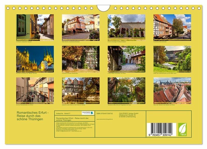 QUALITÄT - Hochwertiger Fotokalender mit 12 wunderschönenMotiven auf lichtbeständigem Bilderdruckpapier, robuste Spiralbindung mit Aufhängebügel.NACHHALTIG - deutliche Abfallreduzierung durch bedarfsgerechte Einzelstückfertigung, umweltfreundliches FSC-zertifiziertes Papier, Produktion in Deutschland, klimabewusste Logistik.PERFEKTES GESCHENK - Kalender für Freunde und Familie, für Kinder und Erwachsene, jung und alt, zu Weihnachten, Geburtstag oder zwischendurch.VIELFALT - Bildkalender in verschiedenen Formaten, z.B. DIN A5, DIN A4, DIN A3 sowie DIN A2. Ob Naturmotiv, Gemälde oder Fotos, ideal für ein persönliches Wohlfühlambiente.Romantische Ansichten der Landeshauptstadt Erfurt von Autor(in): drachenkind-fotografie