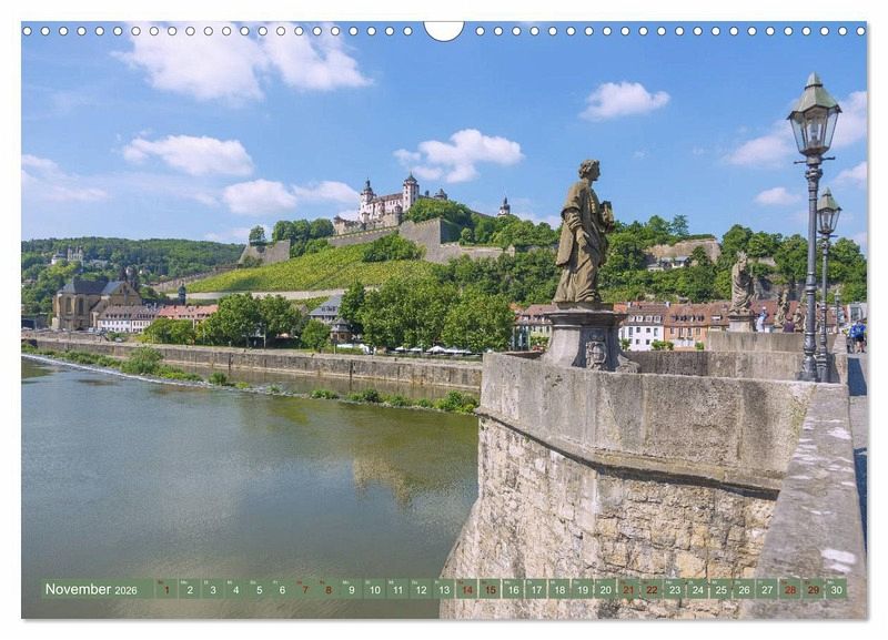 November: Würzburg, Alte Mainbrücke mit hl. Totnan und Marienfeste