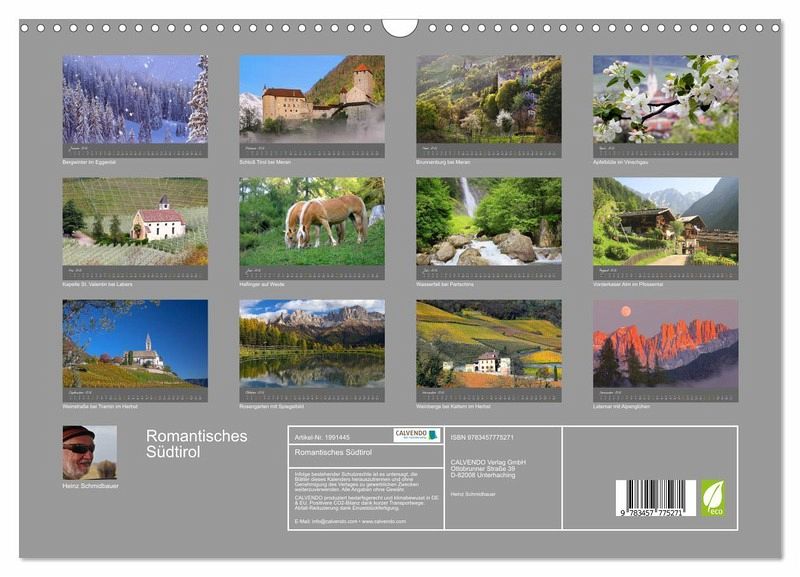 Burgen und Weingärten im Süden der Alpen. Perfekt fotografierte Orte und Landschaften aus Südtirol zeigt dieser Kalender von Heinz Schmidbauer.