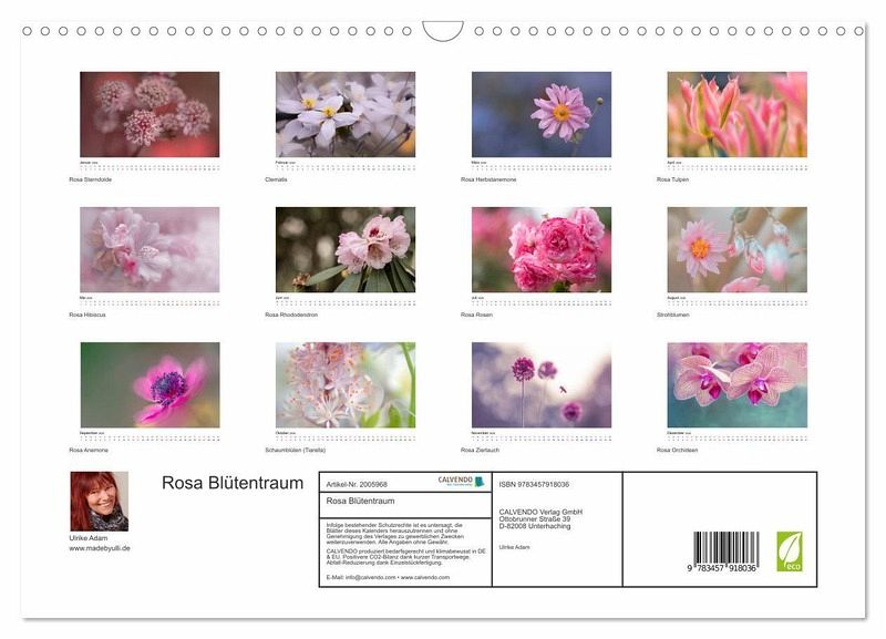 QUALITÄT - Hochwertiger Fotokalender mit 12 wunderschönen Motiven auf lichtbeständigem Bilderdruckpapier, robuste Spiralbindung mit Aufhängebügel.NACHHALTIG - deutliche Abfallreduzierung durch bedarfsgerechte Einzelstückfertigung, umweltfreundliches FSC-zertifiziertes Papier, Produktion in Deutschland, klimabewusste Logistik.PERFEKTES GESCHENK - Kalender für Freunde und Familie, für Kinder und Erwachsene, jung und alt, zu Weihnachten, Geburtstag oder zwischendurch.VIELFALT - Bildkalender in verschiedenen Formaten, z.B. DIN A5, DIN A4, DIN A3 sowie DIN A2. Ob Naturmotiv, Gemälde oder Fotos, ideal für ein persönliches Wohlfühlambiente.Zarte rosa Blütenfotos verzaubern uns das ganze Jahr von Autor(in): Fotokunst Ulrike Adam