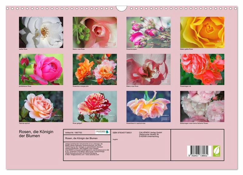 QUALITÄT - Hochwertiger Fotokalender mit 12 wunderschönen Motiven auf lichtbeständigem Bilderdruckpapier, robuste Spiralbindung mit Aufhängebügel.NACHHALTIG - deutliche Abfallreduzierung durch bedarfsgerechte Einzelstückfertigung, umweltfreundliches FSC-zertifiziertes Papier, Produktion in Deutschland, klimabewusste Logistik.PERFEKTES GESCHENK - Kalender für Freunde und Familie, für Kinder und Erwachsene, jung und alt, zu Weihnachten, Geburtstag oder zwischendurch.VIELFALT - Bildkalender in verschiedenen Formaten, z.B. DIN A5, DIN A4, DIN A3 sowie DIN A2. Ob Naturmotiv, Gemälde oder Fotos, ideal für ein persönliches Wohlfühlambiente.Eine Hommage auf die Rose. Sagen Sie es durch die Blume und mit welcher Blume könnten Sie besser sagen "ich liebe dich", als mit der einzigarten Rosen. von Autor(in): VogtArt
