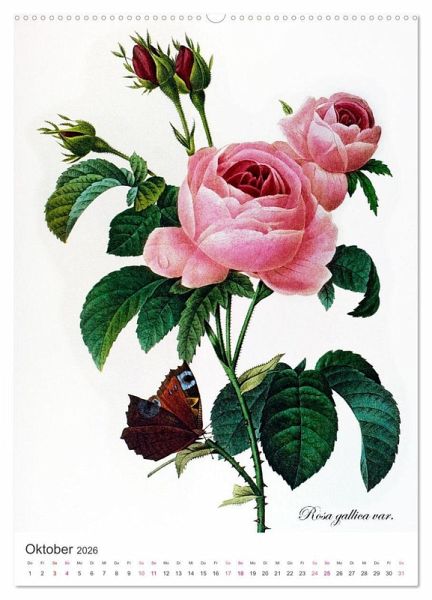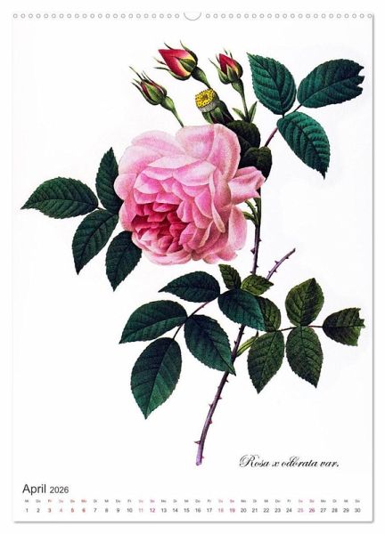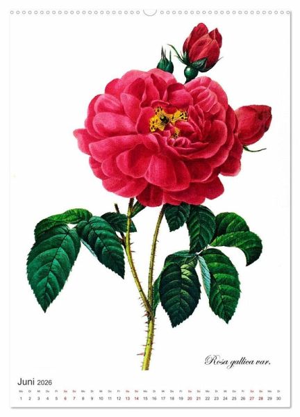 Ein ganzes Jahr voller Rosen! Die Königin der Blumen in Darstellungen des begnadeten belgischen Künsters Pierre-Joseph Redouté, Mitbegründer der botanischen Blumenmalerei. Wie keine andere Blume gilt die Rose in all ihren Farbkleidern als Symbol der Zuneigung. Rote Rosen sagen "Ich liebe Dich!", das Sonnige gelber Rosen versinnbildlicht die Freude über die Freundschaft zweier Menschen. Der Kalender präsentiert großformatig 12 Illustrationen von Rosen vor weißem Hintergrund mit ihren alten lateinischen Namen. Lassen Sie sich bezaubern von der Schönheit der vielsagenden Diva unter den Blumen. Eine besondere Geschenkidee für Blumenliebhaber, Botanikfans, Liebende, Freunde und Kunstliebhaber. Oder schenken Sie ihn sich doch einfach selbst!