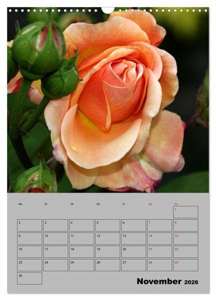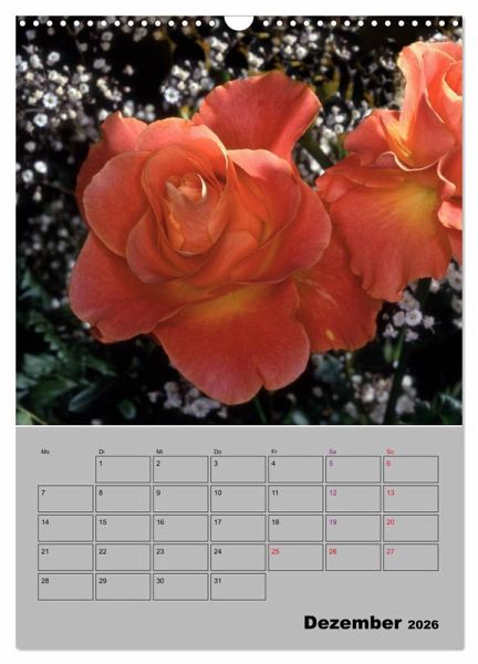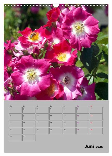 Rosen sind eine uralte Pflanzenart; ihr Alter wird auf 32 Millionen Jahre geschätzt. Anfangs waren es einfach Wildrosen, so wie sie auch heute noch in der freien Natur vorkommen. Ursprünglich, einer Sage nach, sollen alle Rosen weiß gewesen sein, erst ein Blutströpchen aus dem Finger der Venus haben ihnen die rote Farbe verliehen. Wie in dem Kalender zu sehen, gibt es heute Edelrosen in den schönsten und verschiedensten Farben. Die Rose allgemein spielte zu allen Zeiten eine große Rolle im Leben der Menschheit, in der Malerei, in der Dichtkunst und sogar in der Religion ist sie bedeutend. Denn unendlich viele Gedichte und Lieder über die Rose sind bekannt. Seit dem Altertum wird auch das Rosenoel als Duftstoff und sogar in der Küche verwendet. Kein Wunder also, dass die Rose weltweit beliebt ist und gerne zur Verehrung bestimmter Personen verschenkt wird.