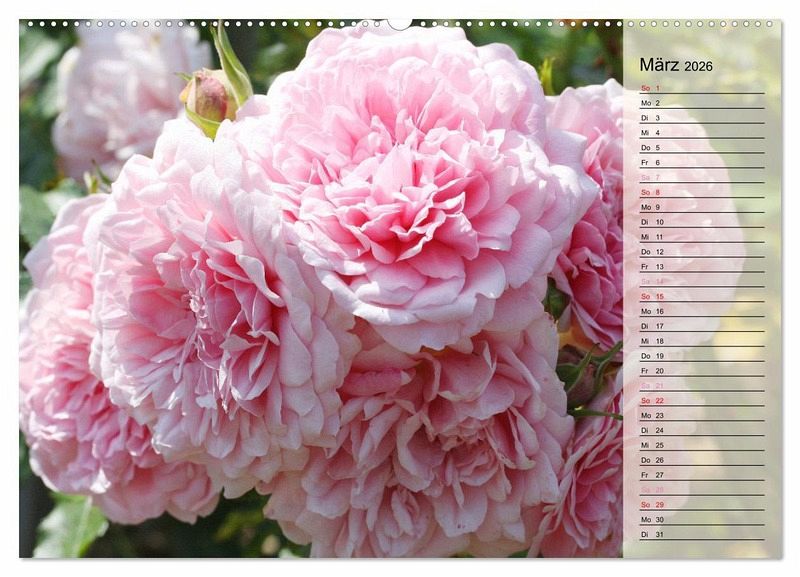 Ein Rosenkalender mit solch wundervollen Fotos ist nicht nur eine Augenweide, sondern auch eine Quelle der Inspiration für alle Rosenliebhaber. Die Bilder zeigen die unvergängliche Schönheit der Natur und laden ein, diese Pracht jeden Tag aufs Neue zu genießen. Jedes Foto ist sorgfältig komponiert, um die Schönheit der Rose hervorzuheben und den Betrachter in die Welt der sommerlichen Blütenpracht und Düfte zu entführen.