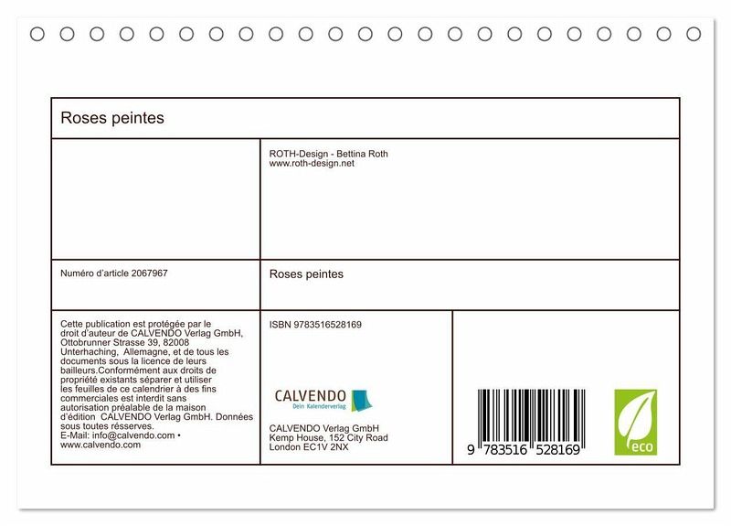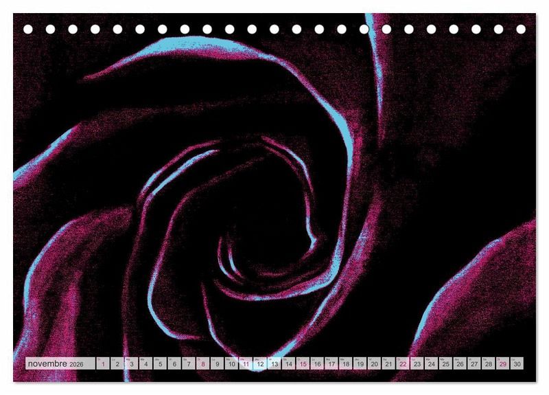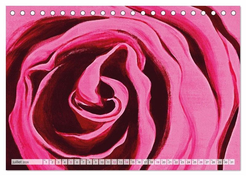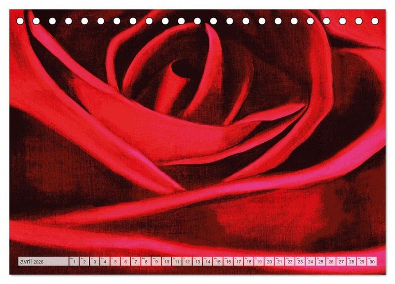 La rose, reine de toutes les fleurs, est un motif intemporel et attrayant pour tous, jeunes et moins jeunes. C'est pourquoi ce calendrier, avec ses roses peintes dans différentes combinaisons de couleurs, convient parfaitement comme cadeau, comme décoration murale chez vous ou sur votre lieu de travail. Les couleurs et le caractère abstrait des pétales de roses rendent ce calendrier unique en son genre. Nous vous souhaitons beaucoup de plaisir avec ce magnifique calendrie.