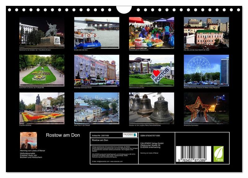 QUALITÄT - Hochwertiger Fotokalender mit 12 wunderschönen Motiven auf lichtbeständigem Bilderdruckpapier, robuste Spiralbindung mit Aufhängebügel.NACHHALTIG - deutliche Abfallreduzierung durch bedarfsgerechte Einzelstückfertigung, umweltfreundliches FSC-zertifiziertes Papier, Produktion in Deutschland, klimabewusste Logistik.PERFEKTES GESCHENK - Kalender für Freunde und Familie, für Kinder und Erwachsene, jung und alt, zu Weihnachten, Geburtstag oder zwischendurch.VIELFALT - Bildkalender in verschiedenen Formaten, z.B. DIN A5, DIN A4, DIN A3 sowie DIN A2. Ob Naturmotiv, Gemälde oder Fotos, ideal für ein persönliches Wohlfühlambiente.Sehenswürdigkeiten der südrussischen Metropole Rostow am Don von Autor(in): Henning von Loewis of Menar