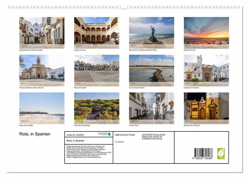 Dieser liebevoll gestaltete Kalender fängt die besondere Atmosphäre Rotas in zwölf beeindruckenden Fotografien ein - vom Sonnenuntergang über dem Atlantik bis zu den verwinkelten Gassen der Altstadt, vom lebhaften Fischerhafen bis zu den ruhigen Momenten am Strand.