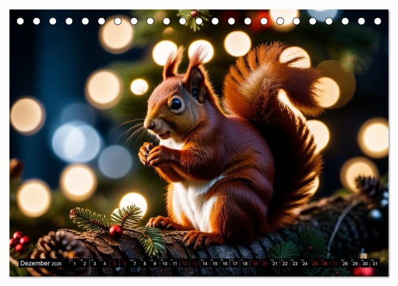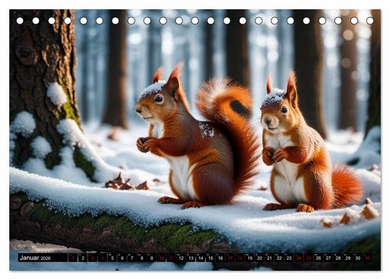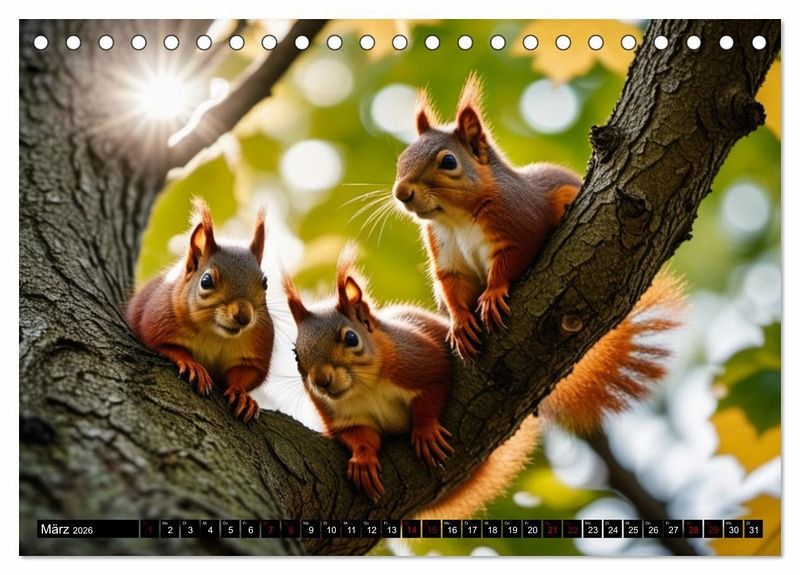 Tauchen Sie ein in die faszinierende Welt der Eichhörnchen mit unserem einzigartigen Kalender, der durch künstliche Intelligenz geschaffene Meisterwerke präsentiert. Jeder Monat enthüllt zauberhafte Bilder, die auf innovative Weise kreiert wurden, die die Anmut und den Charme dieser niedlichen Nager einfangen.