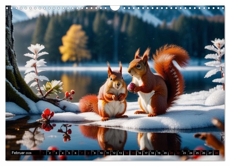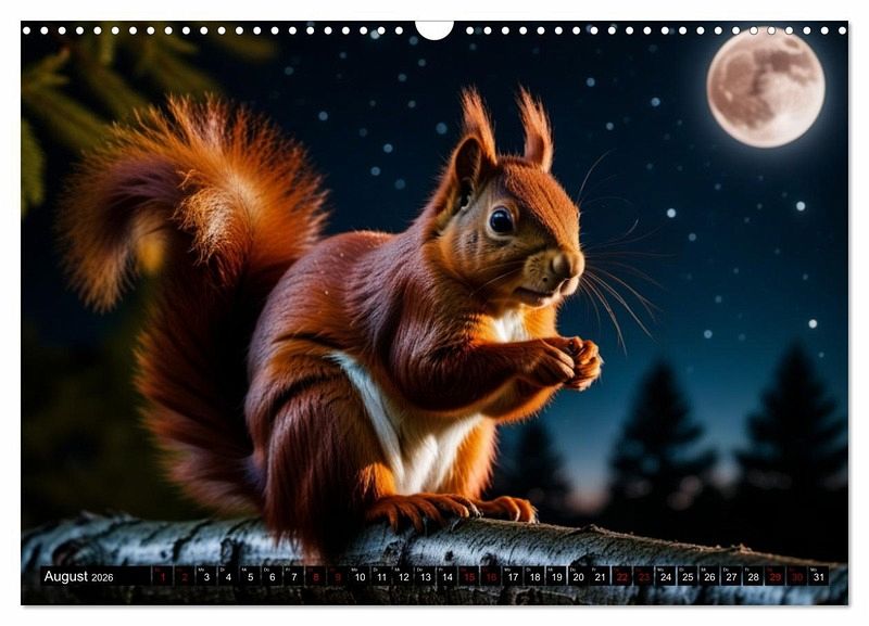 Tauchen Sie ein in die faszinierende Welt der Eichhörnchen mit unserem einzigartigen Kalender, der durch künstliche Intelligenz geschaffene Meisterwerke präsentiert. Jeder Monat enthüllt zauberhafte Bilder, die auf innovative Weise kreiert wurden, die die Anmut und den Charme dieser niedlichen Nager einfangen.