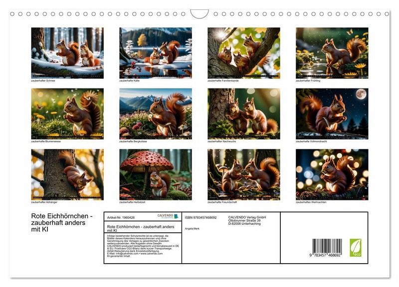 QUALITÄT - Hochwertiger Fotokalender mit 12 wunderschönen Motiven auf lichtbeständigem Bilderdruckpapier, robuste Spiralbindung mit Aufhängebügel.NACHHALTIG - deutliche Abfallreduzierung durch bedarfsgerechte Einzelstückfertigung, umweltfreundliches FSC-zertifiziertes Papier, Produktion in Deutschland, klimabewusste Logistik.PERFEKTES GESCHENK - Kalender für Freunde und Familie, für Kinder und Erwachsene, jung und alt, zu Weihnachten, Geburtstag oder zwischendurch.VIELFALT - Bildkalender in verschiedenen Formaten, z.B. DIN A5, DIN A4, DIN A3 sowie DIN A2. Ob Naturmotiv, Gemälde oder Fotos, ideal für ein persönliches Wohlfühlambiente.KI-generierte Eichhörnchen, künstlich und doch zauberhaft anzuschauen? Auf alle Fälle! von Autor(in): Angela Merk