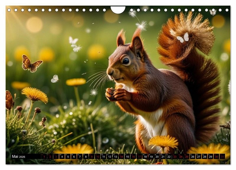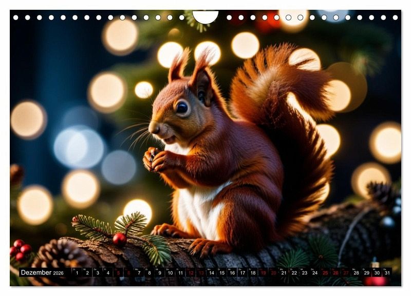 Tauchen Sie ein in die faszinierende Welt der Eichhörnchen mit unserem einzigartigen Kalender, der durch künstliche Intelligenz geschaffene Meisterwerke präsentiert. Jeder Monat enthüllt zauberhafte Bilder, die auf innovative Weise kreiert wurden, die die Anmut und den Charme dieser niedlichen Nager einfangen.