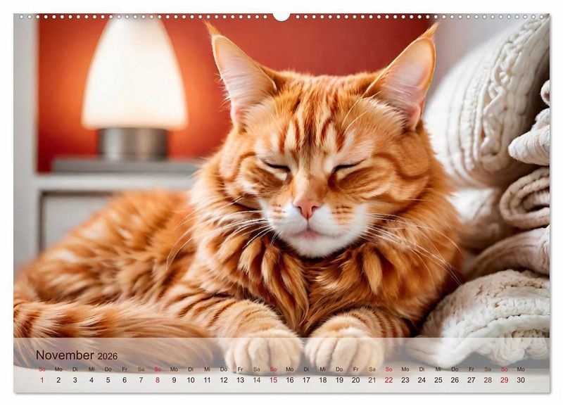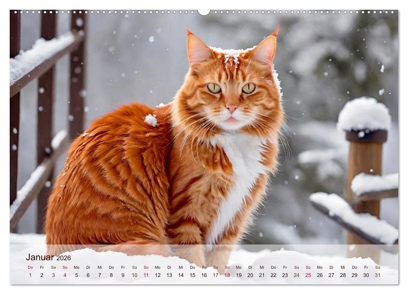 Sie sind die Besonderen unter den Haustieren: rot getigerte Katzen. Die schönen Tiere mit der ausgefallenen Fellfärbung erfreuen sich großer Beliebtheit. Die schönsten Bilder von roten Katern, die Steffani Lehmann mit Unterstützung einer KI editiert hat, sind in diesem Kalender zu sehen.