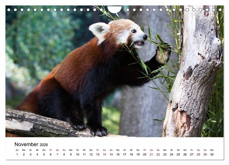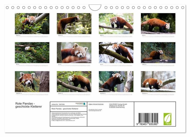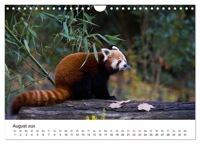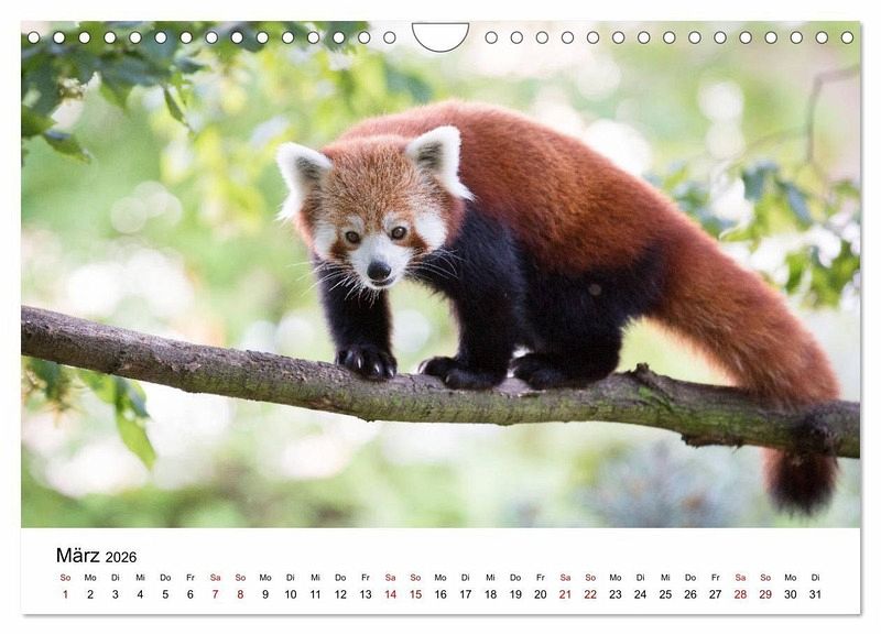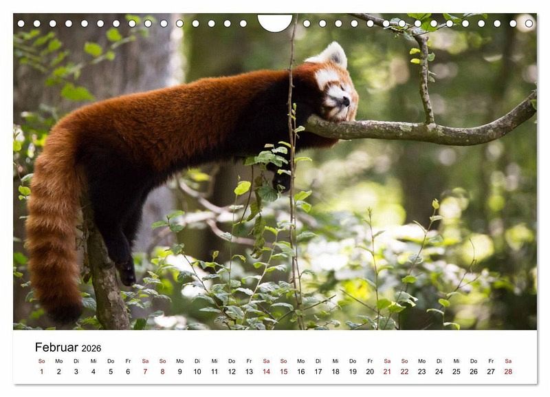 Der rote Panda, auch Katzenbär, Bärenkatze, Feuerfuchs oder Goldhund genannt, ist im östlichen Himalaya und im Südwesten Chinas beheimatet. Er wird auf der Roten Liste als "gefährdet" geführt. Dieser Kalender enthält ausgesuchte Aufnahmen des Fotografen Cloudtail the Snow Leopard dieses beeindruckenden Tieres.