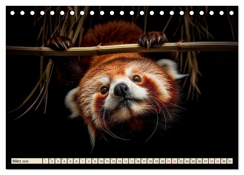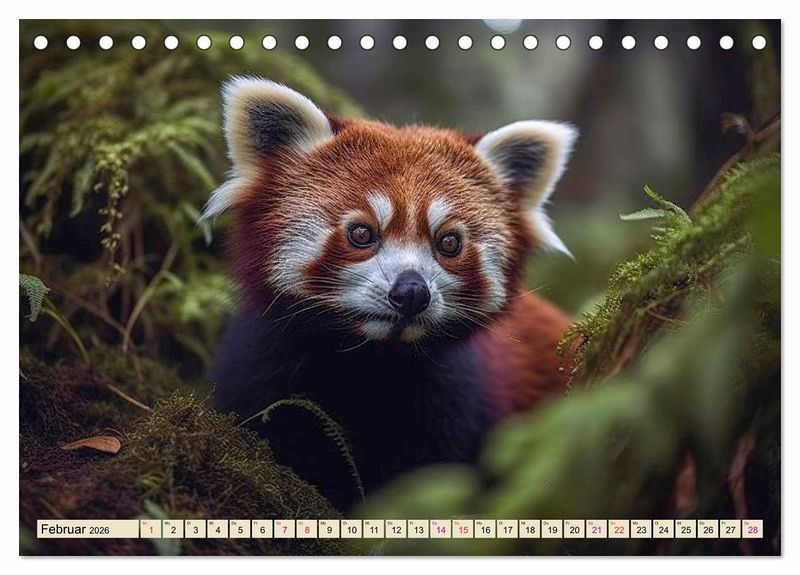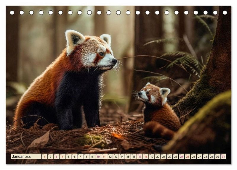 Der kleine Panda, auch Katzenbär, Roter Panda, Feuerfuchs, Bärenkatze oder Goldhund genannt, steht auf der Roten Liste gefährdeter Tierarten der Weltnaturschutzunion und ist noch im Gebiet zwischen Nepal, Burma, Südchina bis zum östlichen Zentralchina zu finden. Der Fotokünstler Peter Roder hat wunderschöne KI-Bilder gestaltet. Ein eindrucksvoller Kalender und ein bezaubernder Begleiter für jeden Tierfreund.