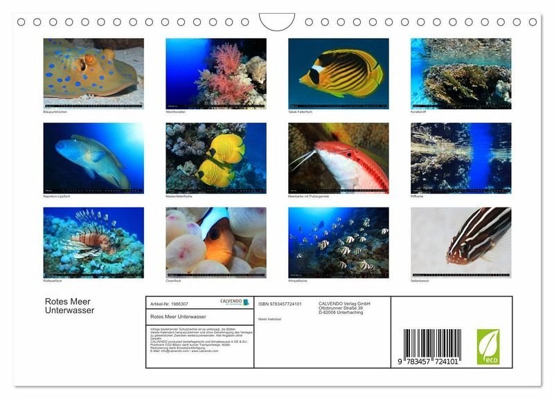 QUALITÄT - Hochwertiger Fotokalender mit 12 wunderschönen Motiven auf lichtbeständigem Bilderdruckpapier, robuste Spiralbindung mit Aufhängebügel.NACHHALTIG - deutliche Abfallreduzierung durch bedarfsgerechte Einzelstückfertigung, umweltfreundliches FSC-zertifiziertes Papier, Produktion in Deutschland, klimabewusste Logistik.PERFEKTES GESCHENK - Kalender für Freunde und Familie, für Kinder und Erwachsene, jung und alt, zu Weihnachten, Geburtstag oder zwischendurch.VIELFALT - Bildkalender in verschiedenen Formaten, z.B. DIN A5, DIN A4, DIN A3 sowie DIN A2. Ob Naturmotiv, Gemälde oder Fotos, ideal für ein persönliches Wohlfühlambiente.Faszinierende Bilder aus der Unterwasserwelt des Roten Meeres von Autor(in): Martin Hablützel