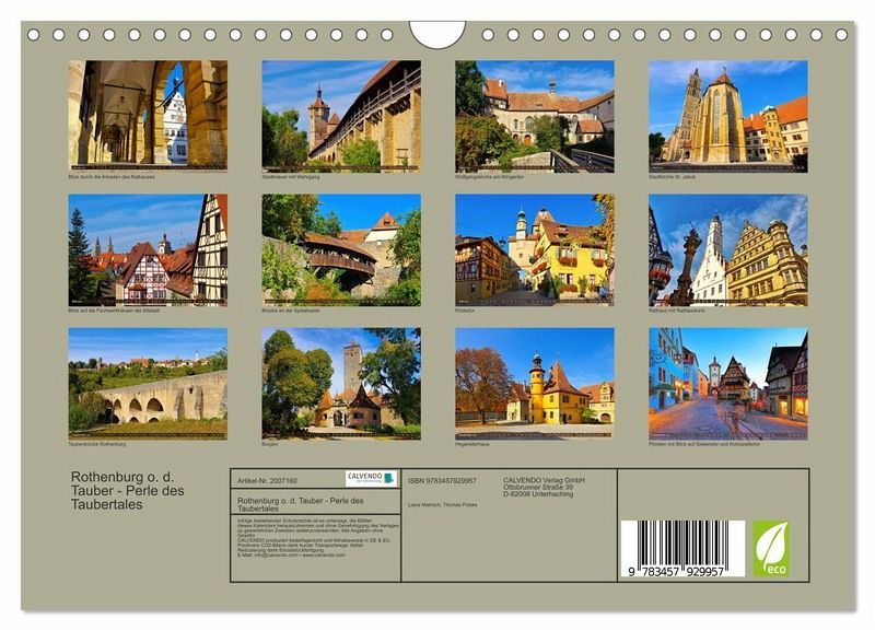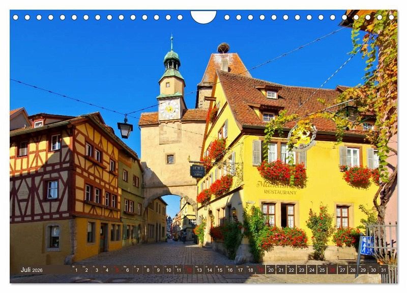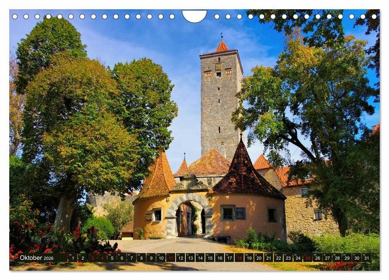 Der Kalender zeigt bekannte Sehenswürdigkeiten und versteckte Kleinode. Machen Sie mit dieser Auswahl einen Rundgang durch die Altstadt und erleben Sie Rothenburgs schönste Ecken jeden Monat neu.