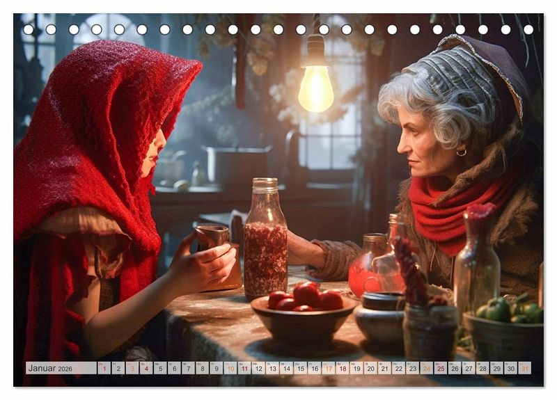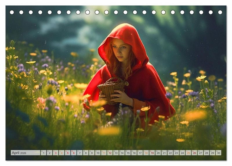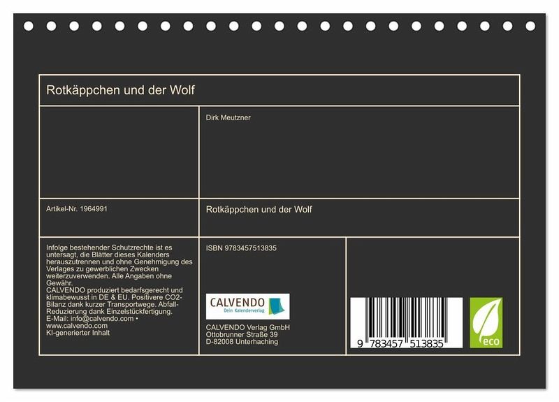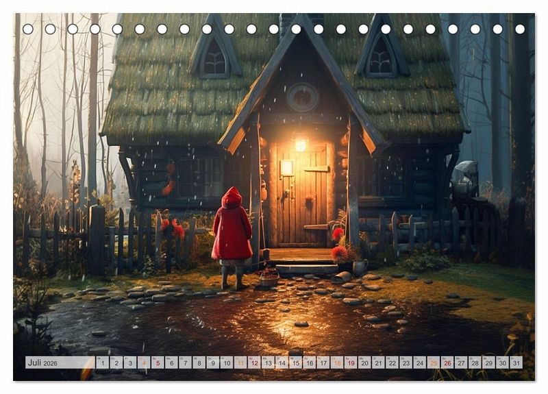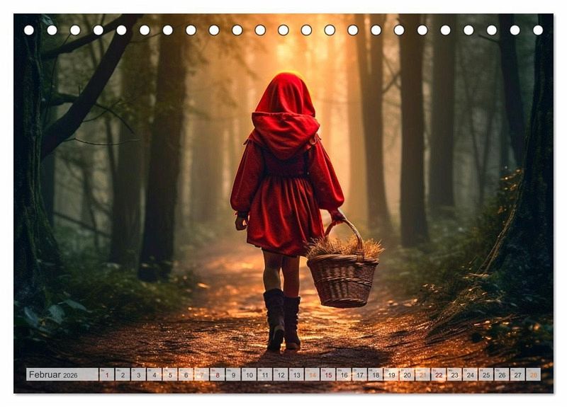 Entdecke die zauberhafte Welt von Rotkäppchen - jetzt als Wandkalender erhältlich! Begib dich auf eine Reise in den märchenhaften Wald und lass dich von der zeitlosen Geschichte von Rotkäppchen verzaubern. Unser exquisiter Wandkalender bringt dir Monat für Monat die faszinierende Welt dieses beliebten Märchens näher. Der Rotkäppchen-Wandkalender ist mit hochwertigem Papier und einer stabilen Spiralbindung versehen, sodass du jeden Monat aufs Neue Freude daran haben wirst.Überrasche einen geliebten Menschen mit diesem bezaubernden Wandkalender. Ob als Geburtstags-, Weihnachts- oder einfach als Überraschungsgeschenk zwischendurch - dieser Kalender wird garantiert für strahlende Augen sorgen. Oder gönne dir selbst etwas Besonderes und lass den Alltag hinter dir, während du die märchenhafte Atmosphäre von Rotkäppchen genießt.Tauche ein in die Welt der Märchen und hol dir jetzt deinen Rotkäppchen-Wandkalender! Ein zeitloses Geschenk voller Magie und Inspiration für dich oder deine Liebsten. Die Bilder wurden im Übrigen vom Fotografen und Digiartkünstler Dirk Meutzner, mit KI und Photoshop erstellt.