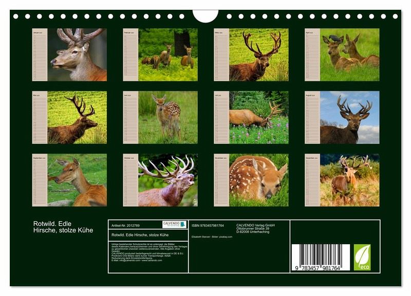 Unser heimisches Rotwild ist unglaublich schön. Hirsche sind die mächtigsten und größten geweihtragenden Wildtiere in unseren Wäldern. Nur die Rotwild-Männchen tragen ein Geweih. Die stolzen Hirschkühe werden ebenfalls relativ groß und sind ziemlich beeindruckend. Ein schöner Planer für die gesamte Familie.