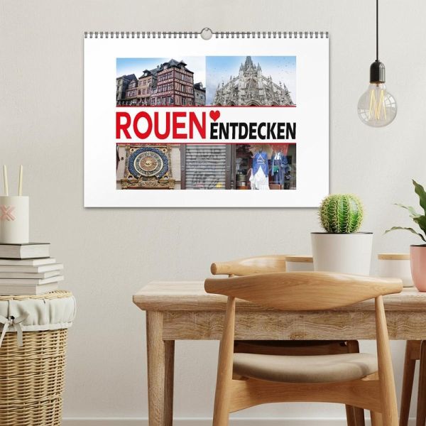 Ein Kalender reicht nicht aus, um die vielen Seiten von Rouen, der Hauptstadt der Normandie, zu zeigen. Um dennoch eine Vorstellung davon zu bekommen, warum Sie diese Stadt unbedingt besuchen sollten, befinden sich auf jedem Kalenderblatt drei bis vier Ansichten der populärsten Besichtigungsziele. Darüber hinaus sind aber auch witzige Details, charmante Ecken und kleine Hingucker erfasst, die zum Flair der Stadt beitragen und sie so liebenswert machen.