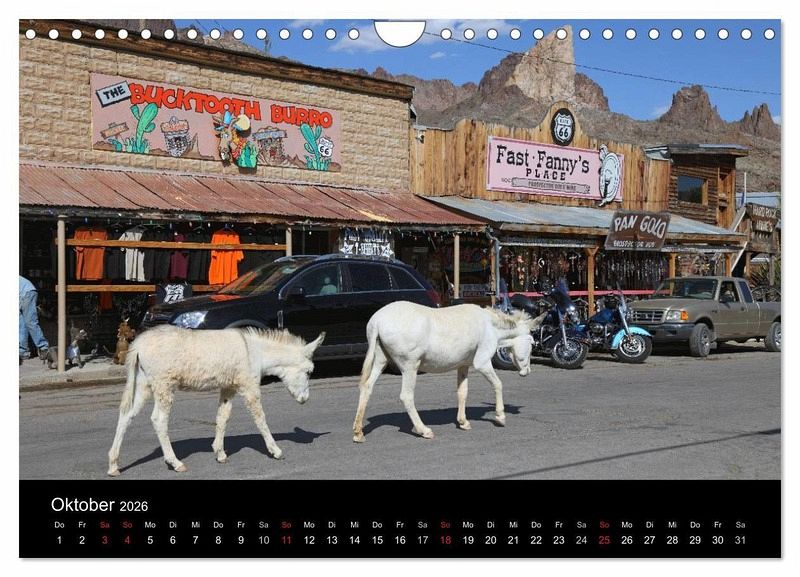 Oktober: Wilde Esel auf Route 66 in Oatman, Arizona