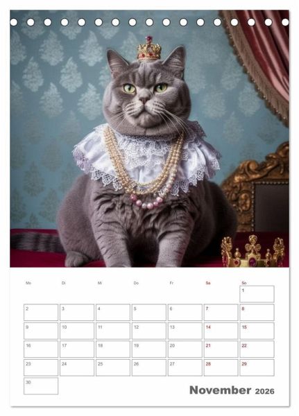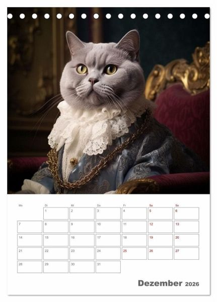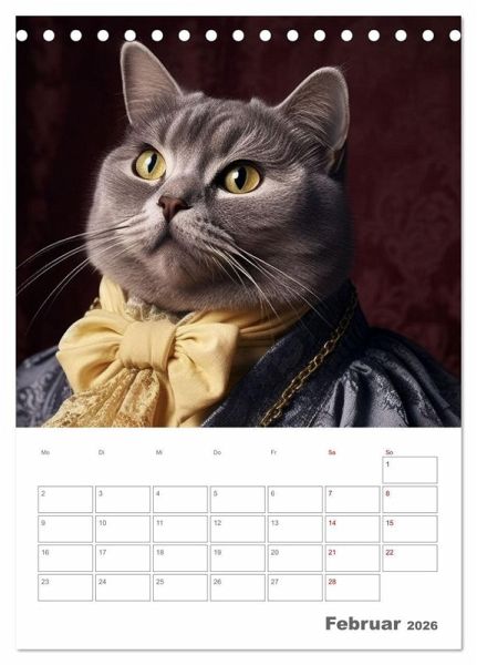 Suchen Sie nach einem Weg, um Ihre Liebe zu Katzen jeden Tag zu feiern? Dann ist unser Katzenkalender mit wunderschönen königlichen Katzenporträts genau das Richtige für Sie!