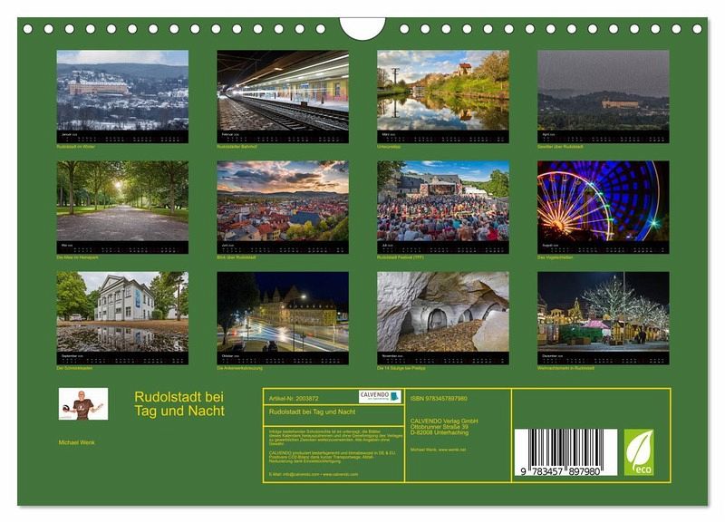 QUALITÄT - Hochwertiger Fotokalender mit 12 wunderschönen Motiven auf lichtbeständigem Bilderdruckpapier, robuste Spiralbindung mit Aufhängebügel.NACHHALTIG - deutliche Abfallreduzierung durch bedarfsgerechte Einzelstückfertigung, umweltfreundliches FSC-zertifiziertes Papier, Produktion in Deutschland, klimabewusste Logistik.PERFEKTES GESCHENK - Kalender für Freunde und Familie, für Kinder und Erwachsene, jung und alt, zu Weihnachten, Geburtstag oder zwischendurch.VIELFALT - Bildkalender in verschiedenen Formaten, z.B. DIN A5, DIN A4, DIN A3 sowie DIN A2. Ob Naturmotiv, Gemälde oder Fotos, ideal für ein persönliches Wohlfühlambiente.Das ist Rudolstadt in seiner vollen Pracht, Heimweh vorprogrammiert! von Autor(in): Wenki