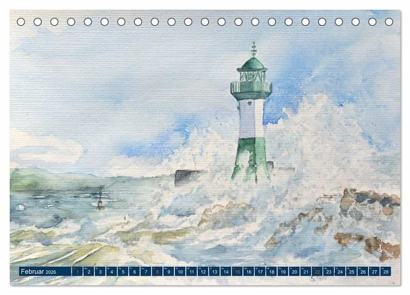 Die Aquarellimpressionen zeigen die Besonderheiten der Insel Rügen zu jeder Jahreszeit. Die Motive umfassen stimmungsvolle Landschaften von der romantischen Kreideküste mit Blick auf das Meer, über den Sassnitzer Hafen mit seinem Leuchtturm, bis zu den Mohnfeldern im Frühsommer oder den Blick auf die Salliner Seebrücke bei Sonnenuntergang. Der Kunstkalender begeistert mit malerischen Landschaften und ausdrucksstarken Motiven, die zum Träumen oder zum Erinnern einladen.