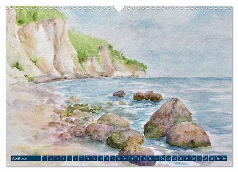 Die Aquarellimpressionen zeigen die Besonderheiten der Insel Rügen zu jeder Jahreszeit. Die Motive umfassen stimmungsvolle Landschaften von der romantischen Kreideküste mit Blick auf das Meer, über den Sassnitzer Hafen mit seinem Leuchtturm, bis zu den Mohnfeldern im Frühsommer oder den Blick auf die Salliner Seebrücke bei Sonnenuntergang. Der Kunstkalender begeistert mit malerischen Landschaften und ausdrucksstarken Motiven, die zum Träumen oder zum Erinnern einladen.
