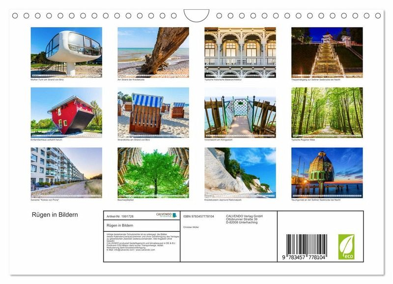 QUALITÄT - Hochwertiger Fotokalender mit 12 wunderschönen Motiven auf lichtbeständigem Bilderdruckpapier, robuste Spiralbindung mit Aufhängebügel.NACHHALTIG - deutliche Abfallreduzierung durch bedarfsgerechte Einzelstückfertigung, umweltfreundliches FSC-zertifiziertes Papier, Produktion in Deutschland, klimabewusste Logistik.PERFEKTES GESCHENK - Kalender für Freunde und Familie, für Kinder und Erwachsene, jung und alt, zu Weihnachten, Geburtstag oder zwischendurch.VIELFALT - Bildkalender in verschiedenen Formaten, z.B. DIN A5, DIN A4, DIN A3 sowie DIN A2. Ob Naturmotiv, Gemälde oder Fotos, ideal für ein persönliches Wohlfühlambiente.Fotos von der Ostseeinsel Rügen von Autor(in): Christian Müller