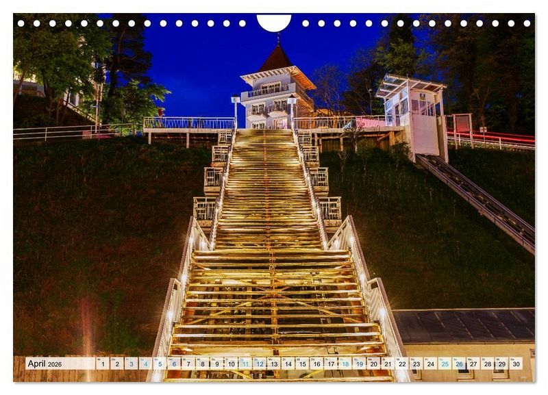 April: Treppenabgang zur Selliner Seebrücke bei Nacht