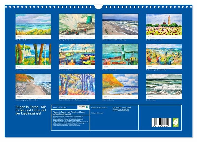 QUALITÄT - Hochwertiger Fotokalender mit 12 wunderschönen Motiven auf lichtbeständigem Bilderdruckpapier, robuste Spiralbindung mit Aufhängebügel.NACHHALTIG - deutliche Abfallreduzierung durch bedarfsgerechte Einzelstückfertigung, umweltfreundliches FSC-zertifiziertes Papier, Produktion in Deutschland, klimabewusste Logistik.PERFEKTES GESCHENK - Kalender für Freunde und Familie, für Kinder und Erwachsene, jung und alt, zu Weihnachten, Geburtstag oder zwischendurch.VIELFALT - Bildkalender in verschiedenen Formaten, z.B. DIN A5, DIN A4, DIN A3 sowie DIN A2. Ob Naturmotiv, Gemälde oder Fotos, ideal für ein persönliches Wohlfühlambiente.Gemalte Bilder von der Ostseeinsel Rügen von Autor(in): Michaela Spreider