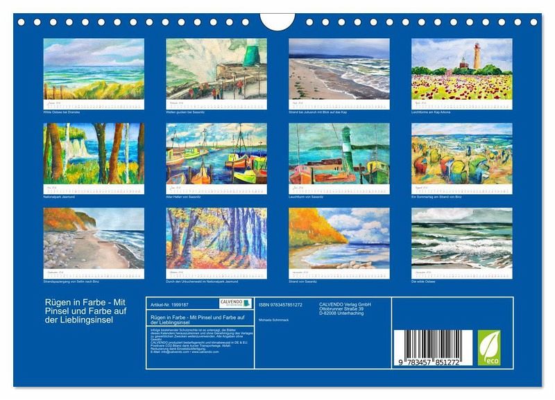 QUALITÄT - Hochwertiger Fotokalender mit 12 wunderschönen Motiven auf lichtbeständigem Bilderdruckpapier, robuste Spiralbindung mit Aufhängebügel.NACHHALTIG - deutliche Abfallreduzierung durch bedarfsgerechte Einzelstückfertigung, umweltfreundliches FSC-zertifiziertes Papier, Produktion in Deutschland, klimabewusste Logistik.PERFEKTES GESCHENK - Kalender für Freunde und Familie, für Kinder und Erwachsene, jung und alt, zu Weihnachten, Geburtstag oder zwischendurch.VIELFALT - Bildkalender in verschiedenen Formaten, z.B. DIN A5, DIN A4, DIN A3 sowie DIN A2. Ob Naturmotiv, Gemälde oder Fotos, ideal für ein persönliches Wohlfühlambiente.Gemalte Bilder von der Ostseeinsel Rügen von Autor(in): Michaela Spreider